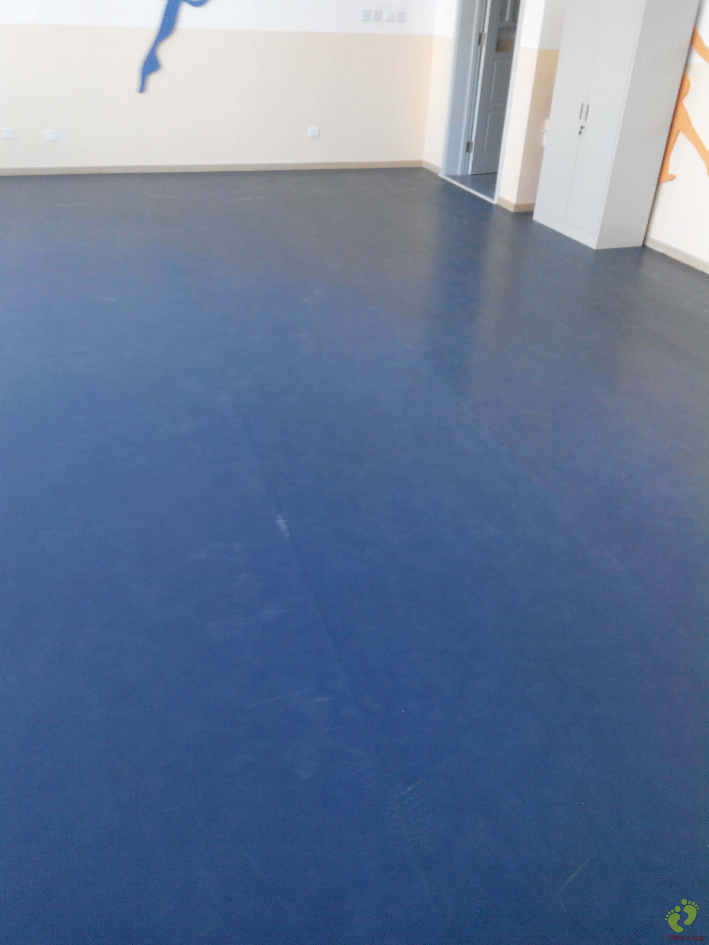 日前我公司承接了北京小學翡翠城分校舞蹈教室舞蹈地膠的鋪設,施工面積總計230.8平米,采用我公司 舞愛羅藏藍色3mm厚的舞蹈地膠產(chǎn)品。完工效果好,地面平整,顏色均勻、光澤、亮度好,不反光。